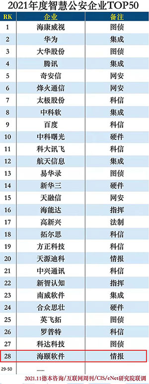近日,互联网周刊发布2021年度智慧公安企业TOP50,烟台MK体育软件公司(股票代码:832327)上榜。同日,山东软件行业协会发布《2021年山东省软件和信息技术服务业综合竞争力排行榜单》,MK体育软件再次上榜。