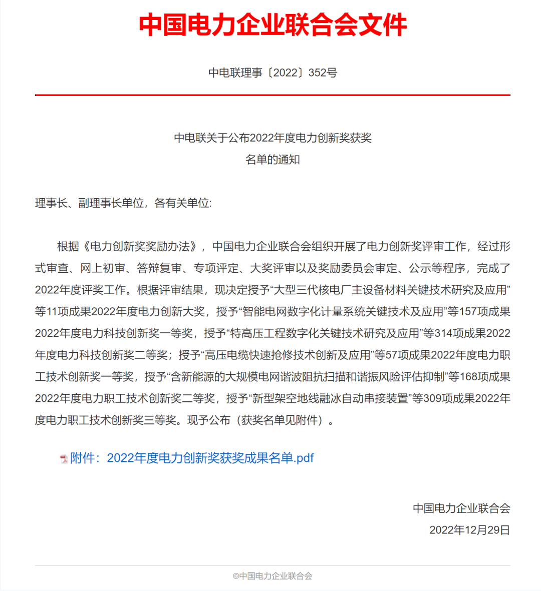 近日,中国电力企业联合会公布“2022年度电力创新奖”获奖名单,烟台MK体育软件与南方电网广东电网有限责任公司电力调度控制中心、天津大学、中国南方电网电力调度控制中心等单位共同参与的“配电网智能运行关键技术研究及推广应用”喜获电力创新大奖。