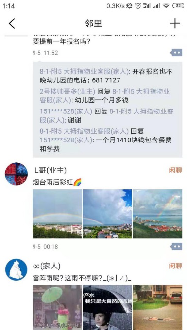 有了基础的服务,就要发展更多更好的服务,在4月中旬住户使用了第一版功能后,兄弟们没有时间休息,又来到了下一个时间段的冲刺——完善更多服务,给用户带去更好的体验。此时需要和小区住户互动起来,达到更好的运营效果。在4月中旬第一版本上线后,依次又加入了更多更“好玩”的功能,如社区活动,邻里圈,即时通讯,人脸开门、密码开门、 访客二维码开门、手机远程开门、云对讲、蓝牙开门以及刷卡开门等种类齐全的开门方式,方便的报事报修等等,每一版本的更新都收到了很好的反馈,这也给了我们很大的动力。