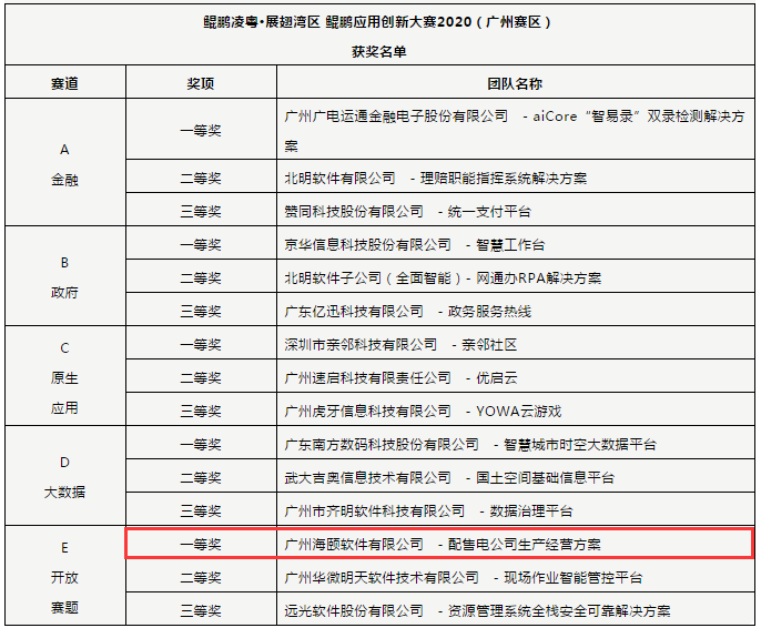 2020年8月21日,鲲鹏应用创新大赛广州赛区总决赛在广州东圃合景福朋喜来登酒店如期举行,经过激烈的角逐,MK体育软件携参赛作品“配售电公司生产经营一体化平台”荣获广州赛区总决赛“开放命题”组一等奖。