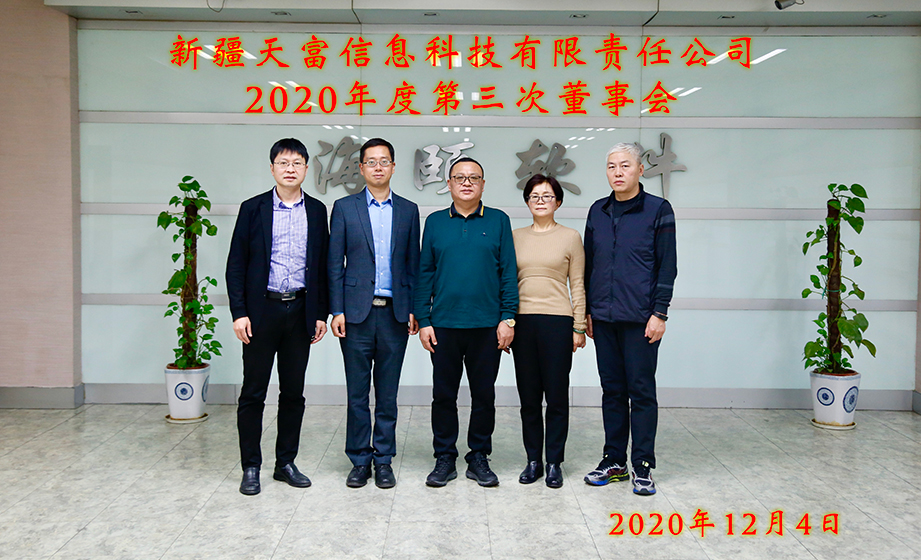 2020年12月4日,新疆天富信息科技有限责任公司董事长李总一行6人莅临MK体育软件,并召开了新疆天富信息科技有限责任公司2020年度第三次董事会。