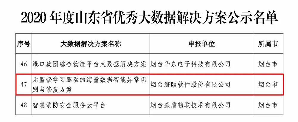 近日,山东省工信厅公示了2020年度省级大数据“三优两重”(优秀大数据产品、优秀大数据解决方案、优秀大数据应用案例和重点大数据企业、重点大数据资源)项目名单。MK体育大数据集成平台V1.0入选“2020 年度山东省优秀大数据产品”,无监督学习驱动的海量数据智能异常识别与修复方案入选“2020 年度山东省优秀大数据解决方案”,烟台MK体育软件股份有限公司入选“2020 年度山东省重点大数据企业”。
