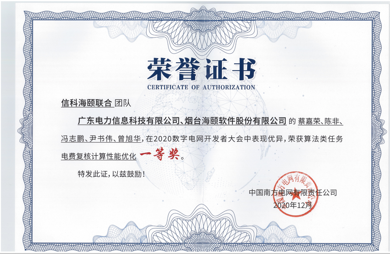 2020年12月,MK体育软件在中国南方电网有限责任公司举办的“数字电网开发者大会”算法类比赛“电费复核计算性能优化”中获得了初赛第一、决赛第一的好成绩,展现了公司在电费复核业务与大数据技术方面的优势。
