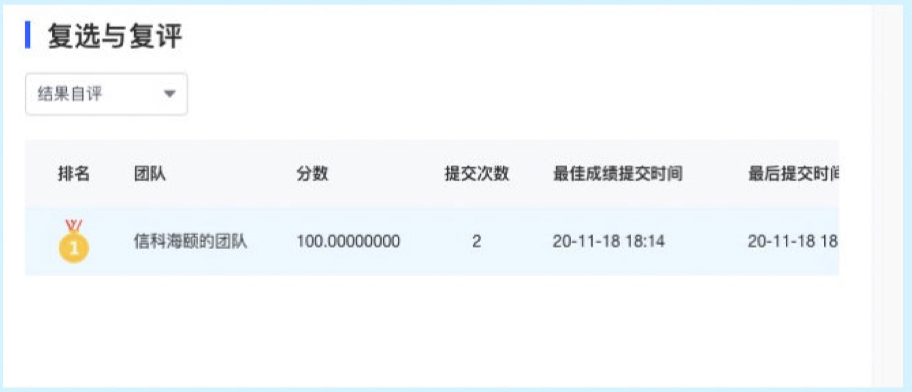 11月10号,初选告捷,方案比拼在所有参赛队中排名第一!